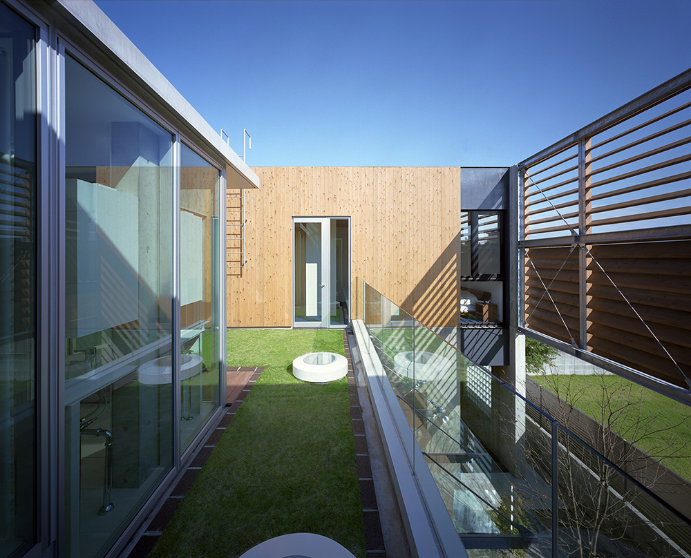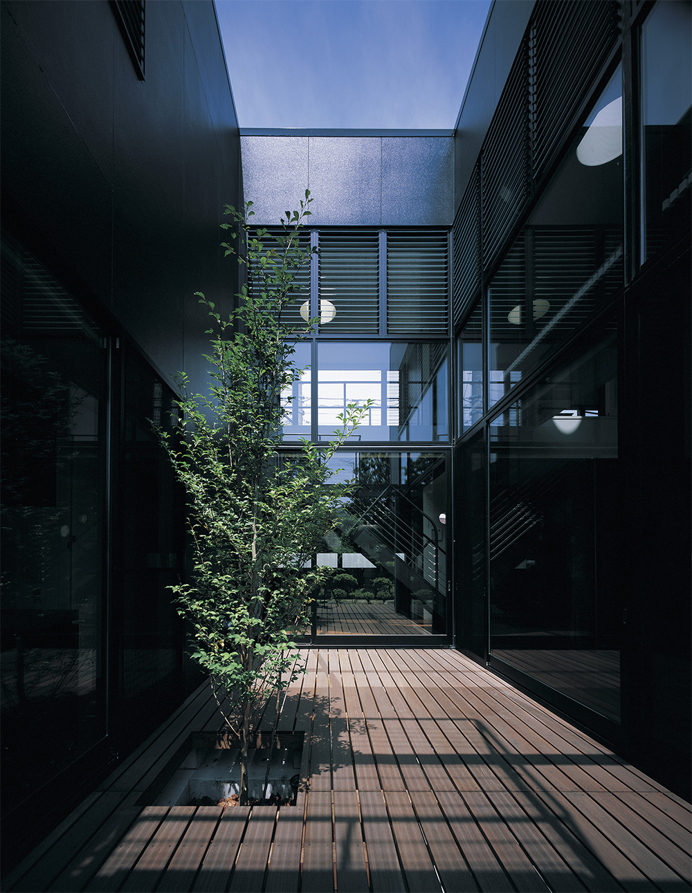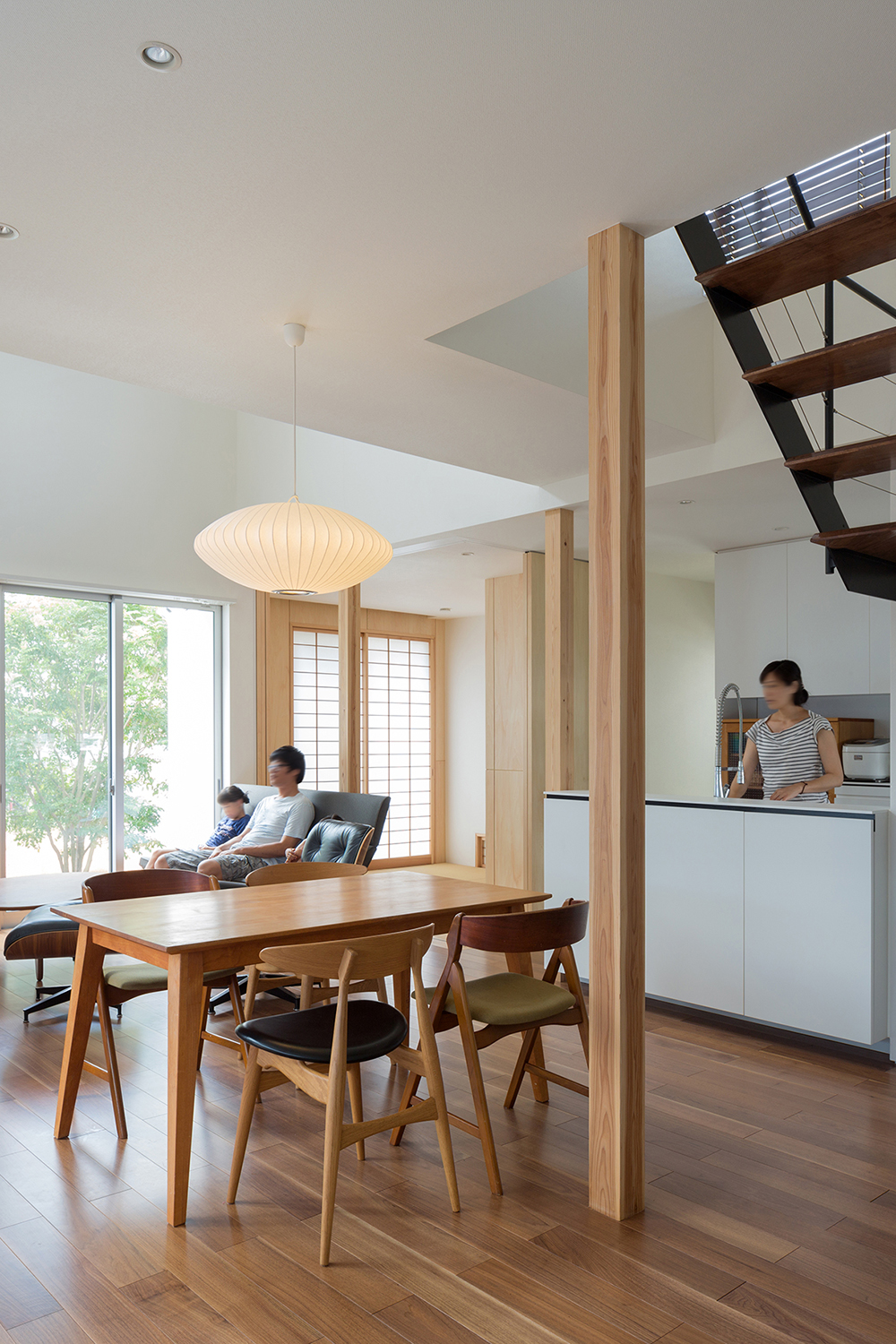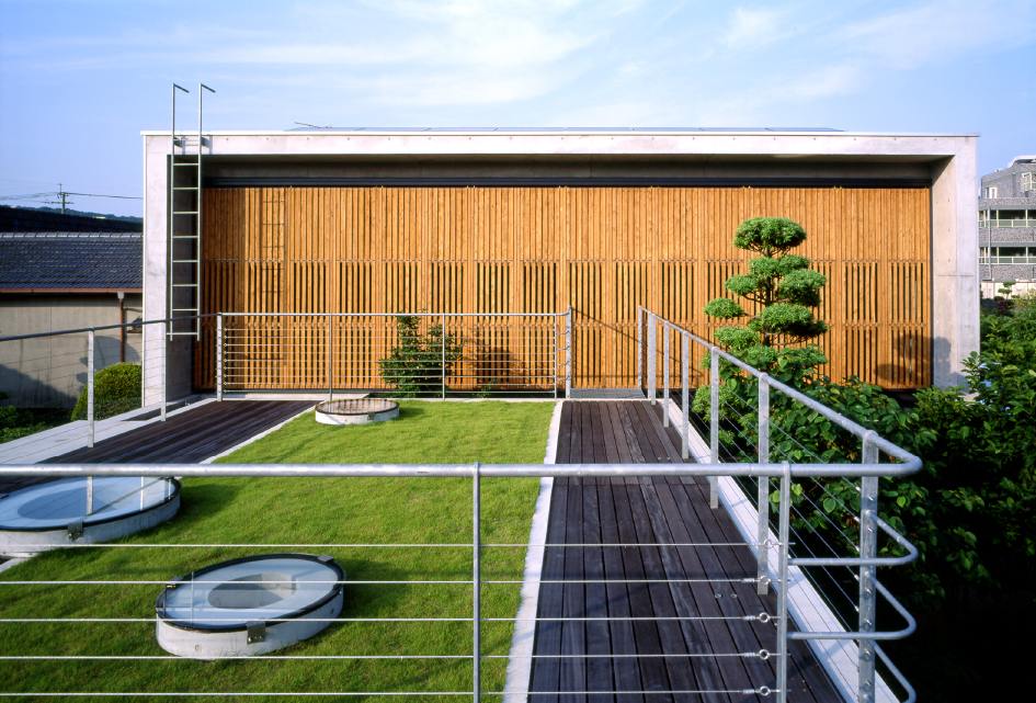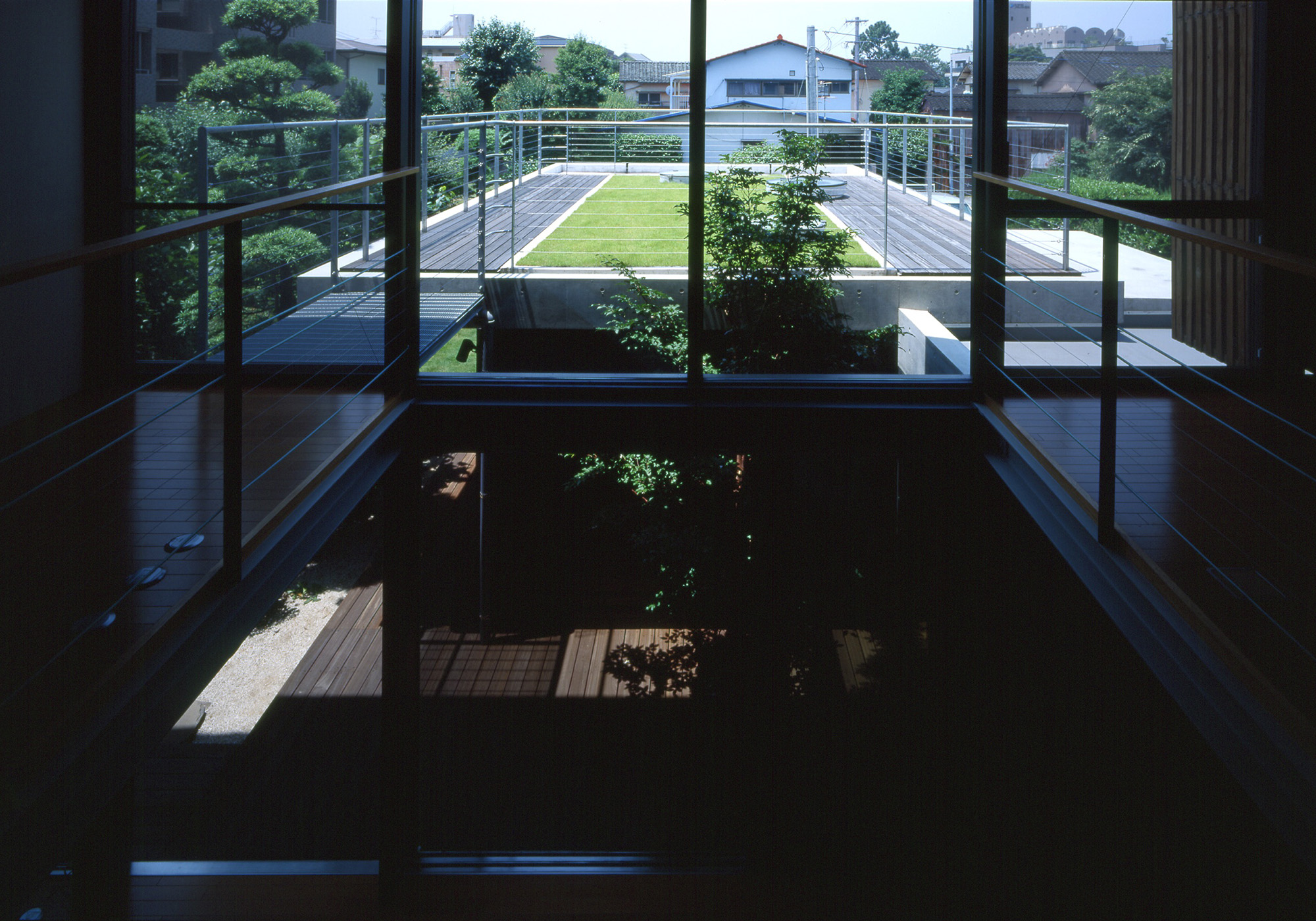 二世帯同居を想定。季節を感じる穏やかな住空間いろいろな仕掛けで、風、緑、木漏れ日を演出する。