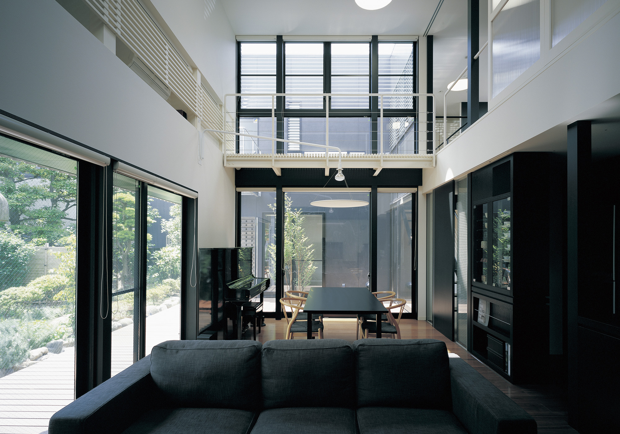 性格の異なるふたつの庭のある住空間借景の庭とプライベートな中庭から取り込まれた緑が生活を彩る。