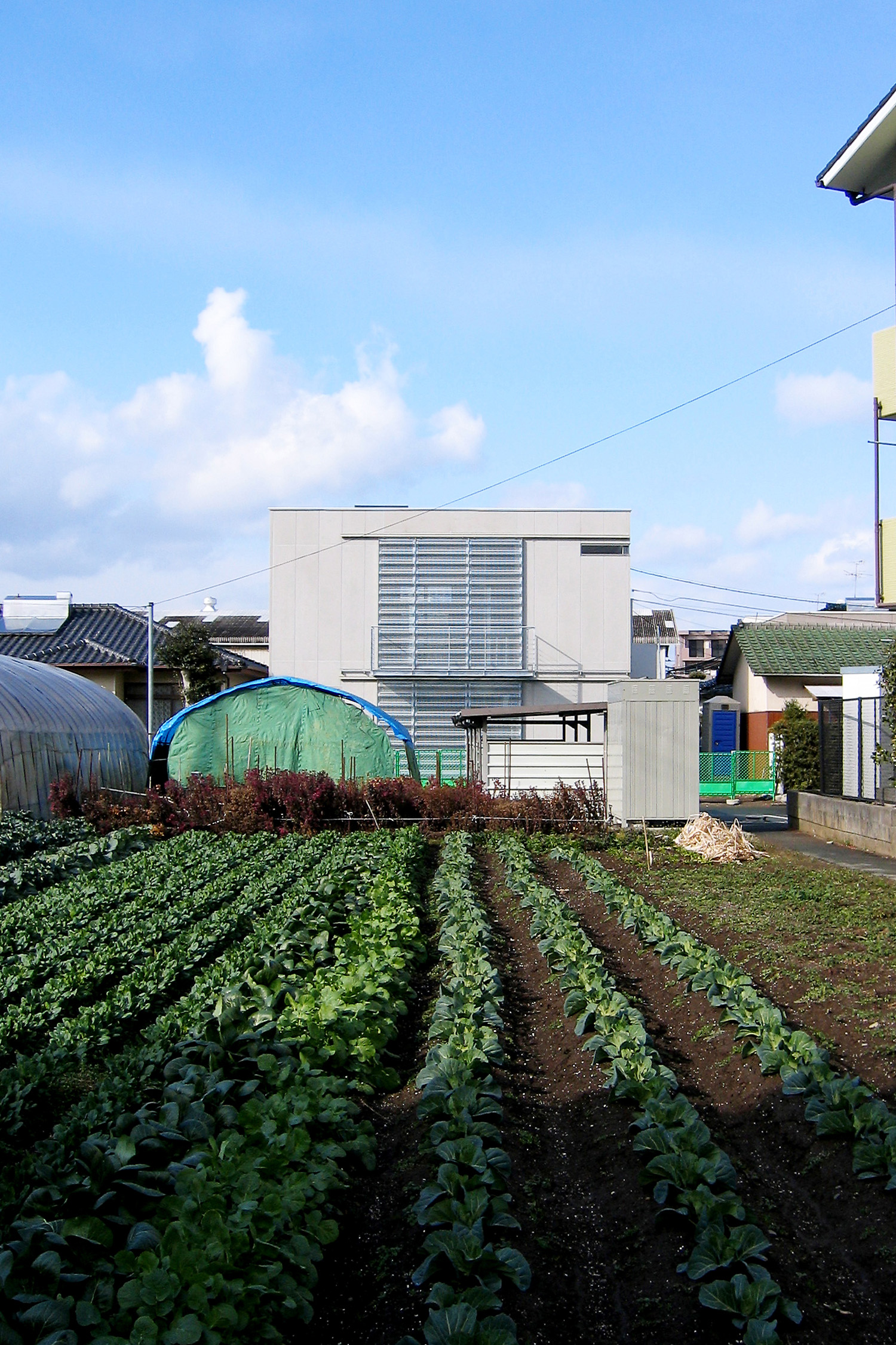 建物は古くからの畑地に建て売り住宅や工場などが点在する住宅地にある。