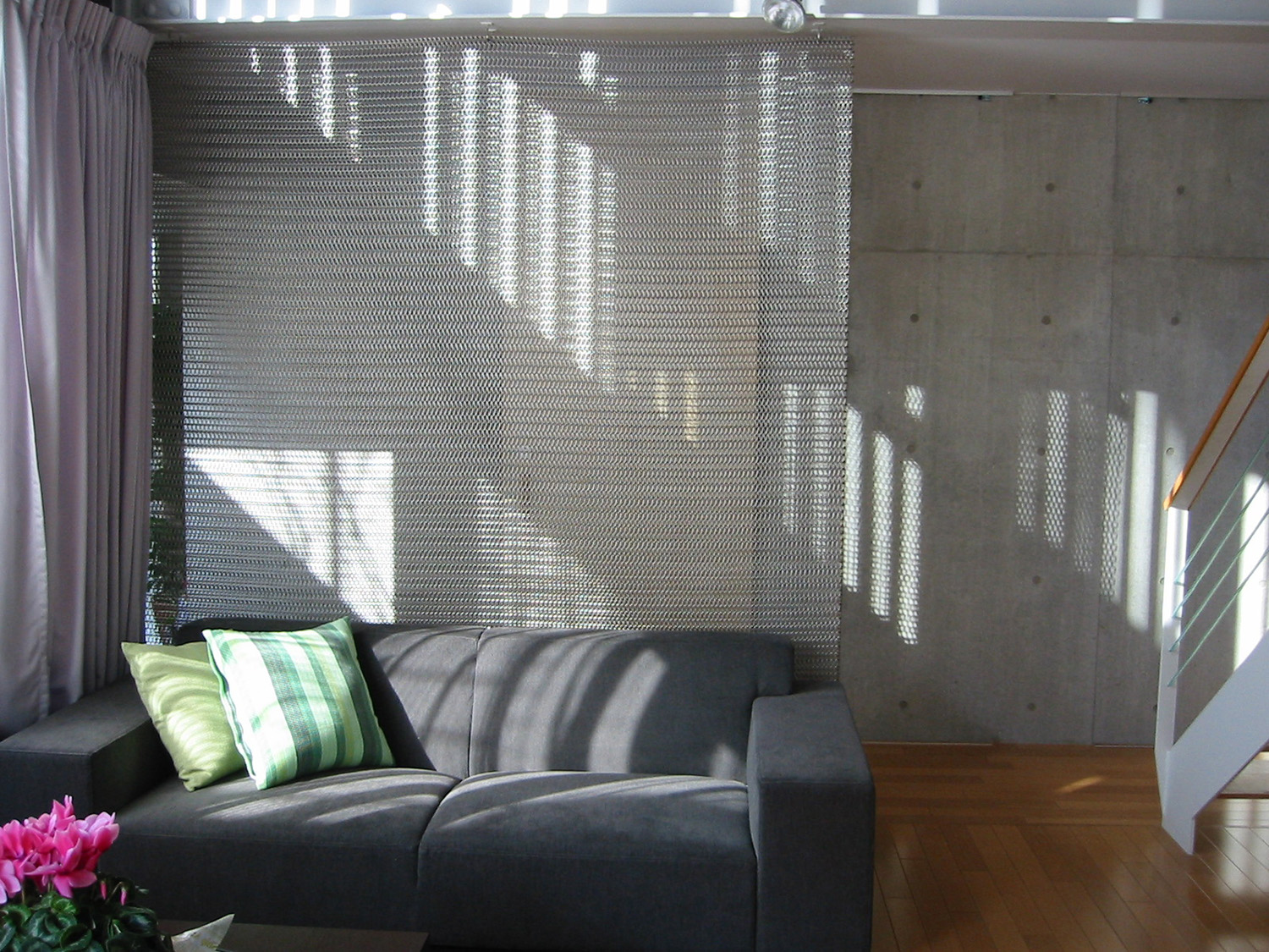 視線を適度に遮り、風の流れは妨げないステンレスメッシュという素材を採用。