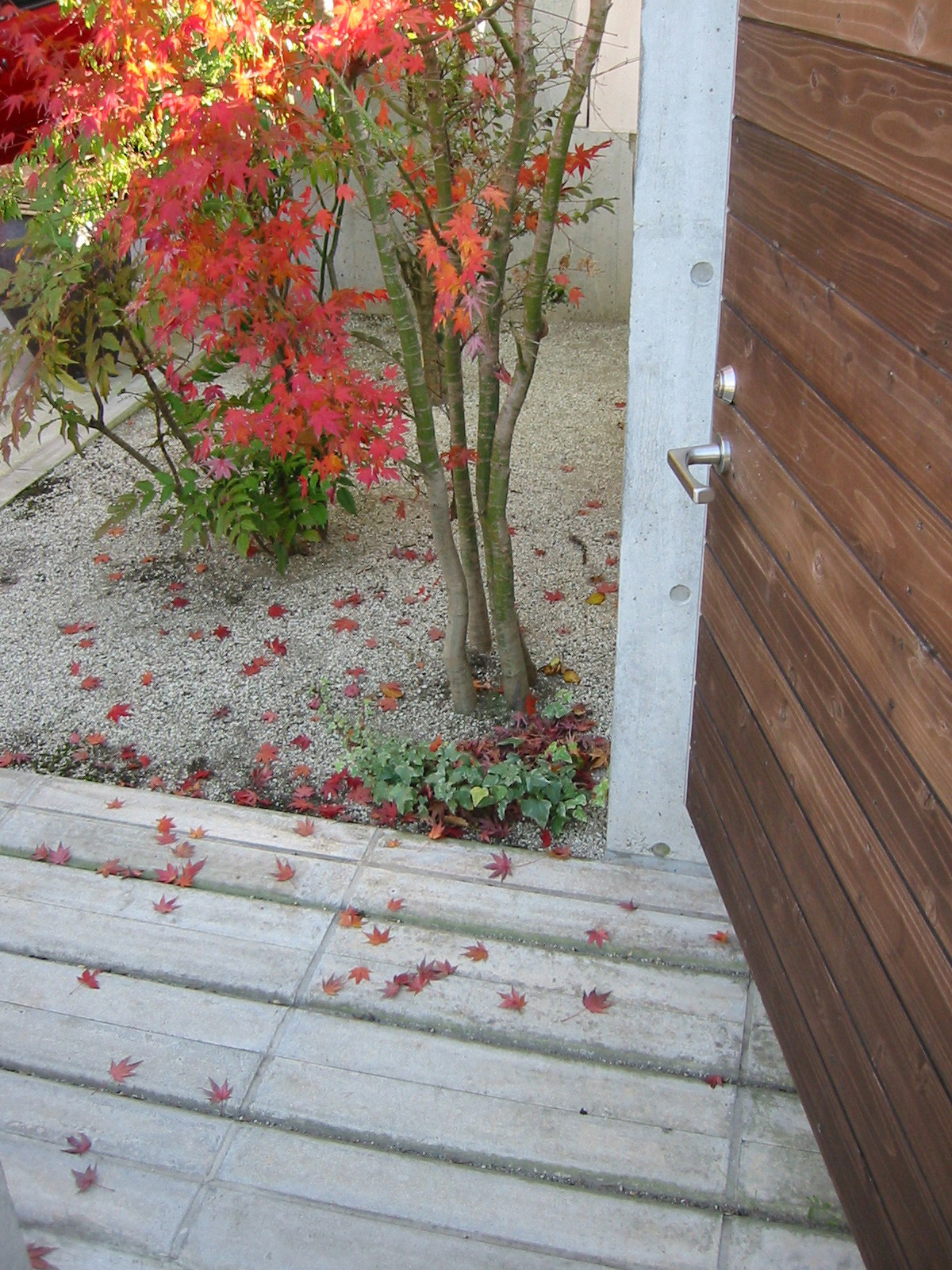奥まった場所に玄関を設け、アプローチの長さを長く取っている。