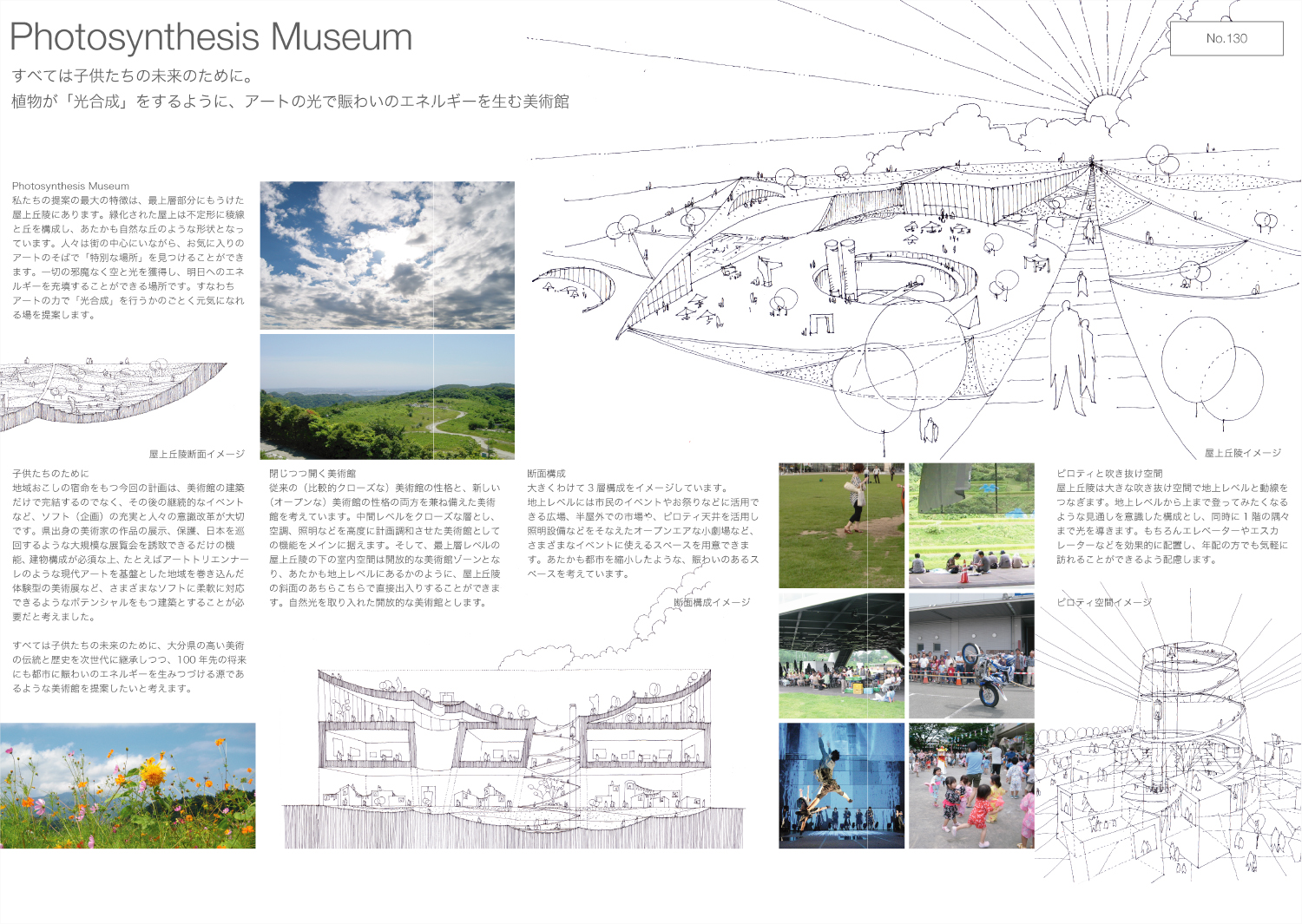 地域おこしの宿命をもつ今回の計画は、美術館の建築だけで完結するのでなく、その後の継続的なイベントなど、ソフト(企画)の充実と人々の意識改革が大切です。県出身の美術家の作品の展示、保護、日本を巡回するような大規模な展覧会を誘致できるだけの機能、建物構成に加え、たとえばアートトリエンナーレのような現代アートを基盤とした体験型の美術展など、さまざまなソフトに柔軟に対応できるようなポテンシャルをもつ建築とすることが必要だと考えました。そうすることで、すべては子供たちのために、大分の伝統と歴史を次世代に継承しつつ、100年先の未来にも都市に賑わいのエネルギーを生みつづける源であるような美術館を提案したいと考えています。