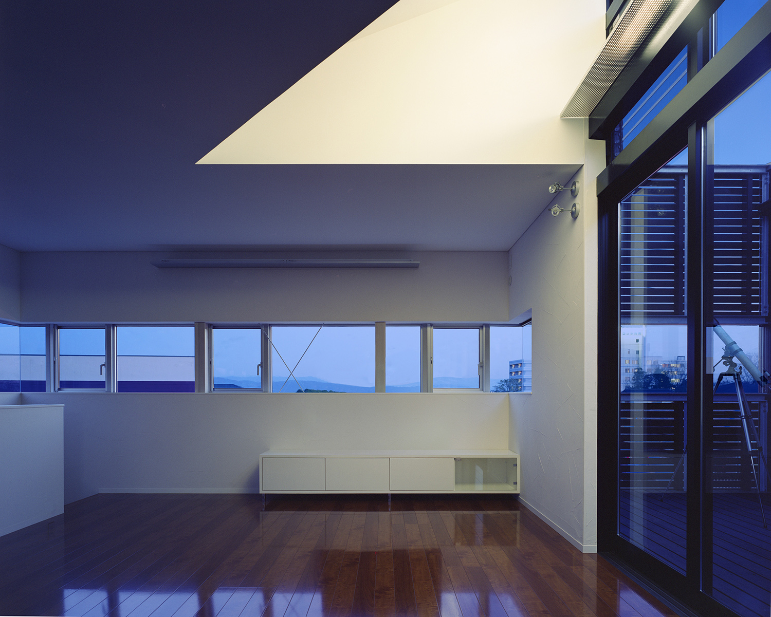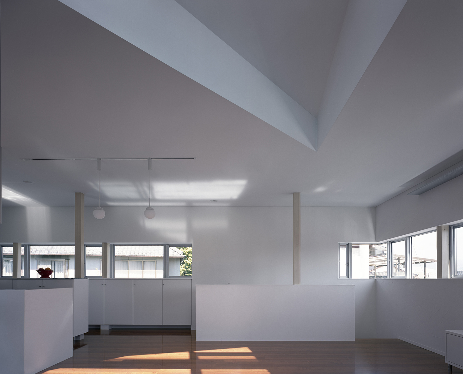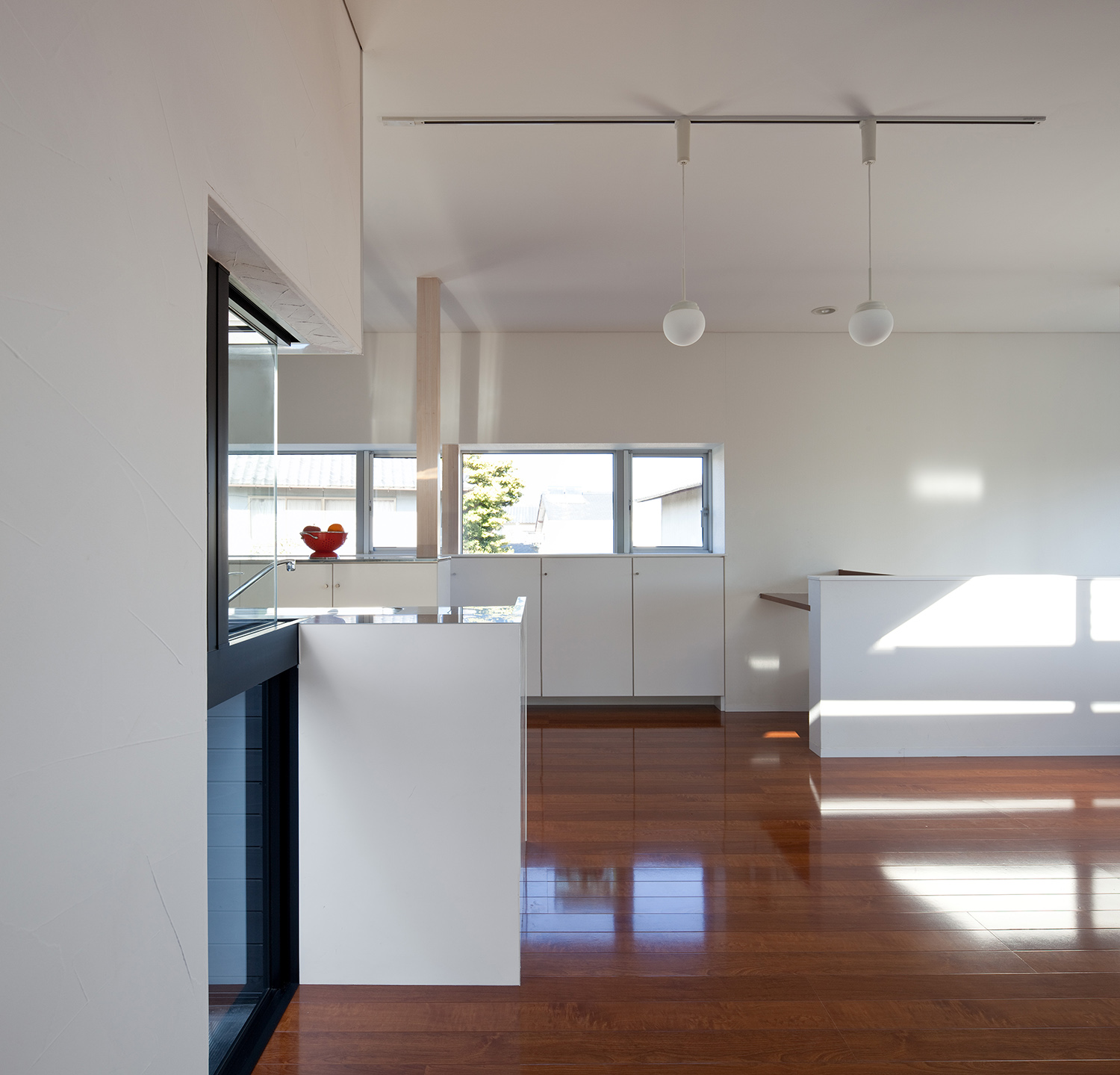 水平に伸びる窓が室内を明るくする。