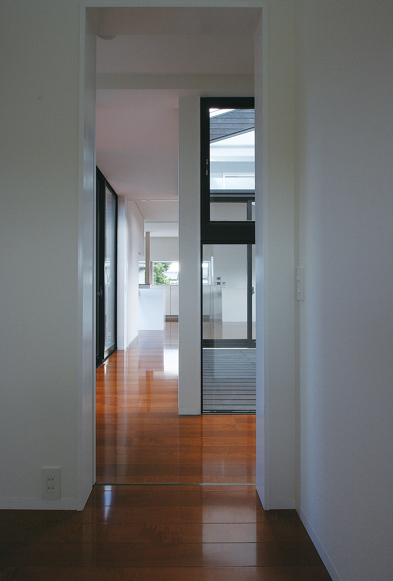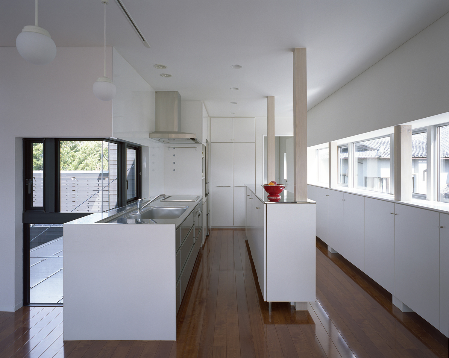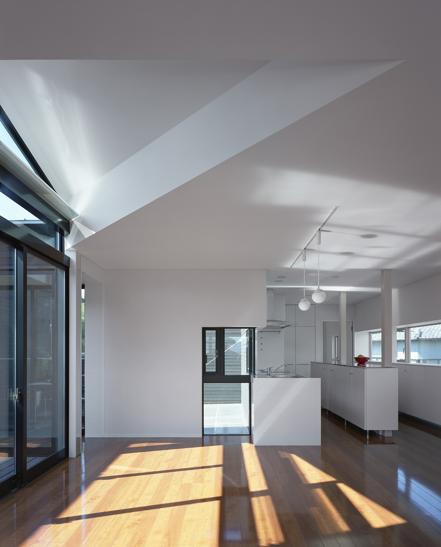 水平に伸びる窓が室内を明るくする。