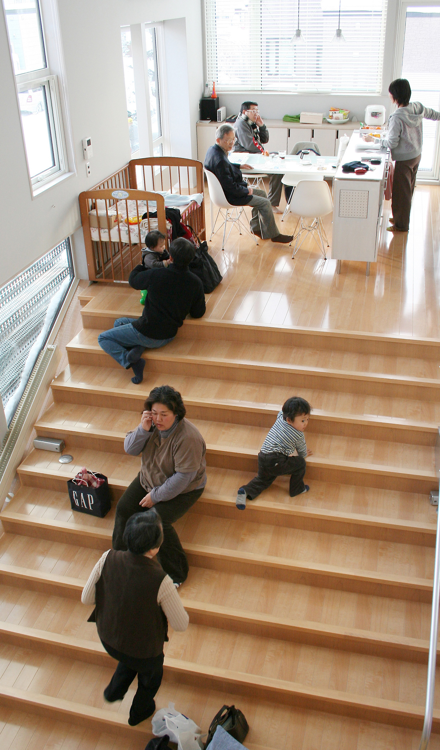 階段状の床は子供たちにとっては絶好の遊び場となる。