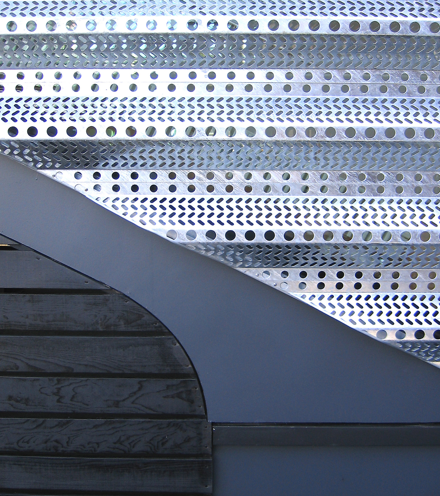鉄、モルタル、木の素材の対比。