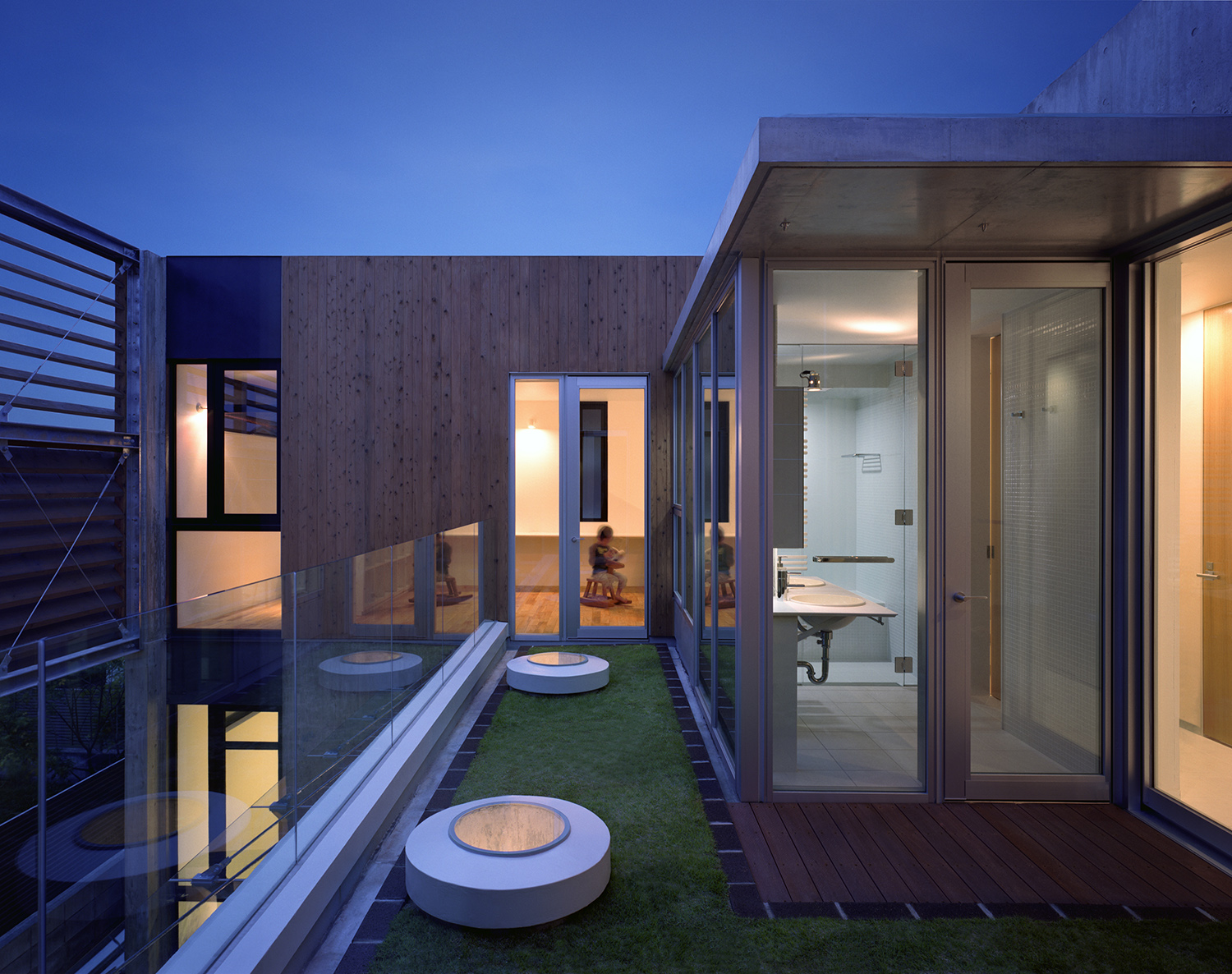 中庭から連続した2階の芝生テラス。