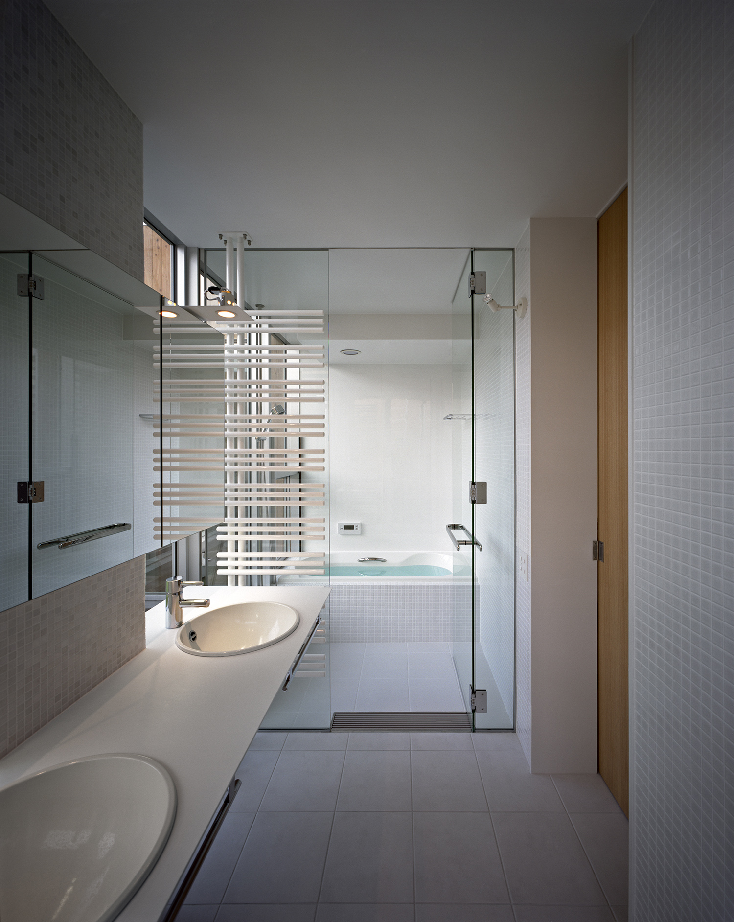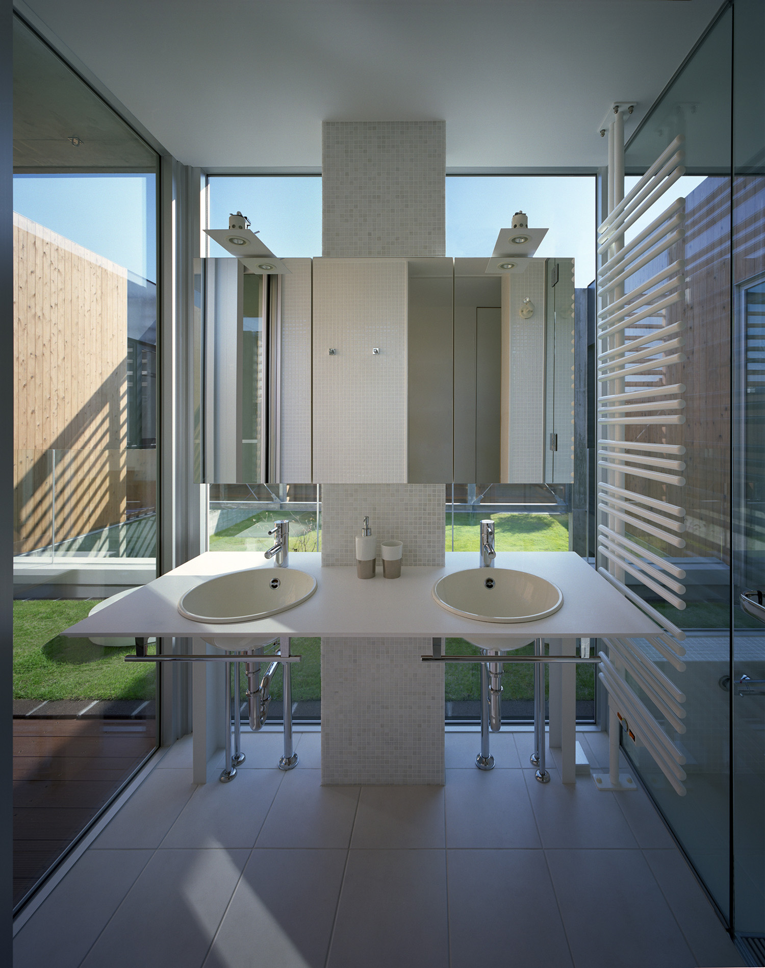 プライバシーを守りながらも解放的で明るい洗面台。
