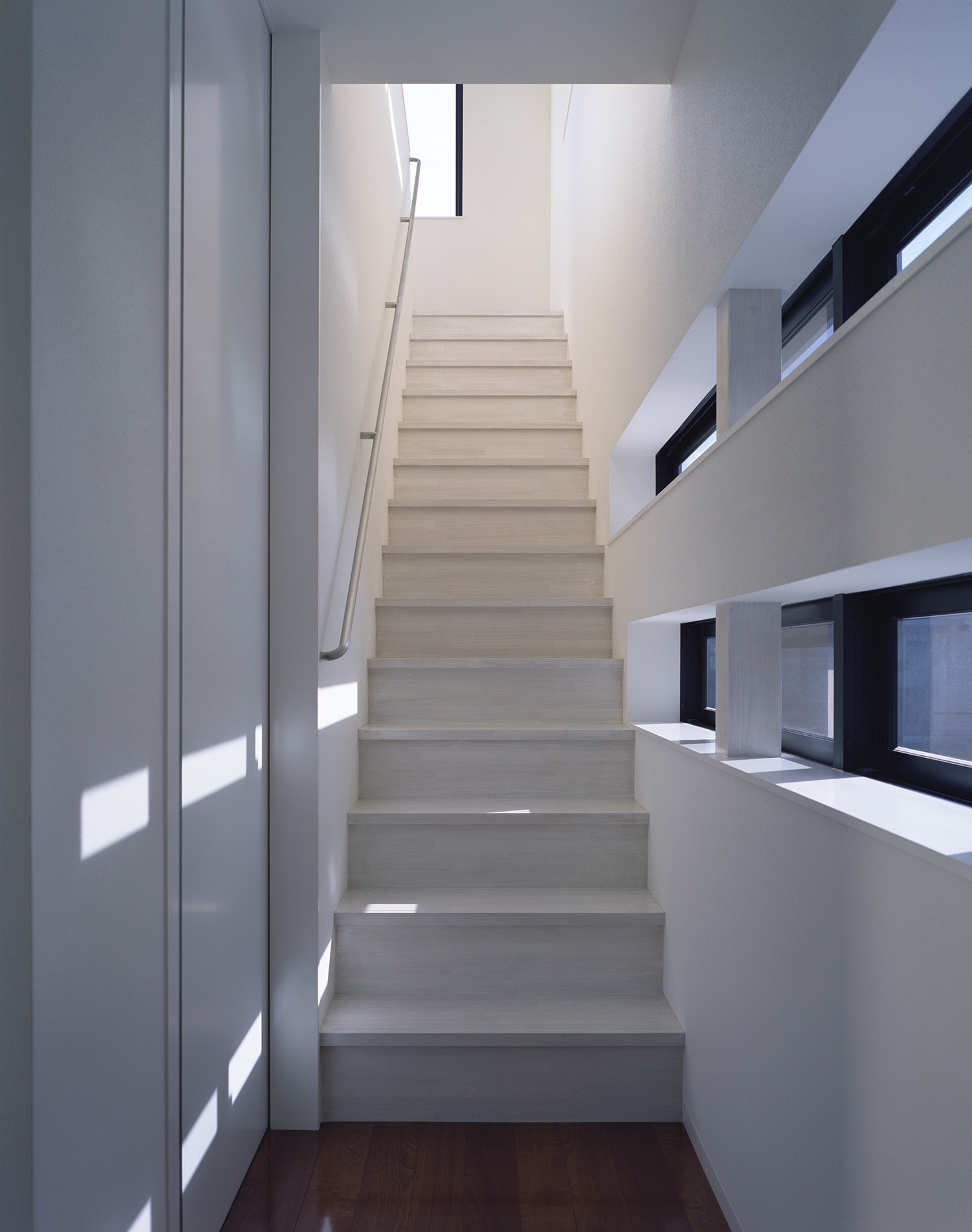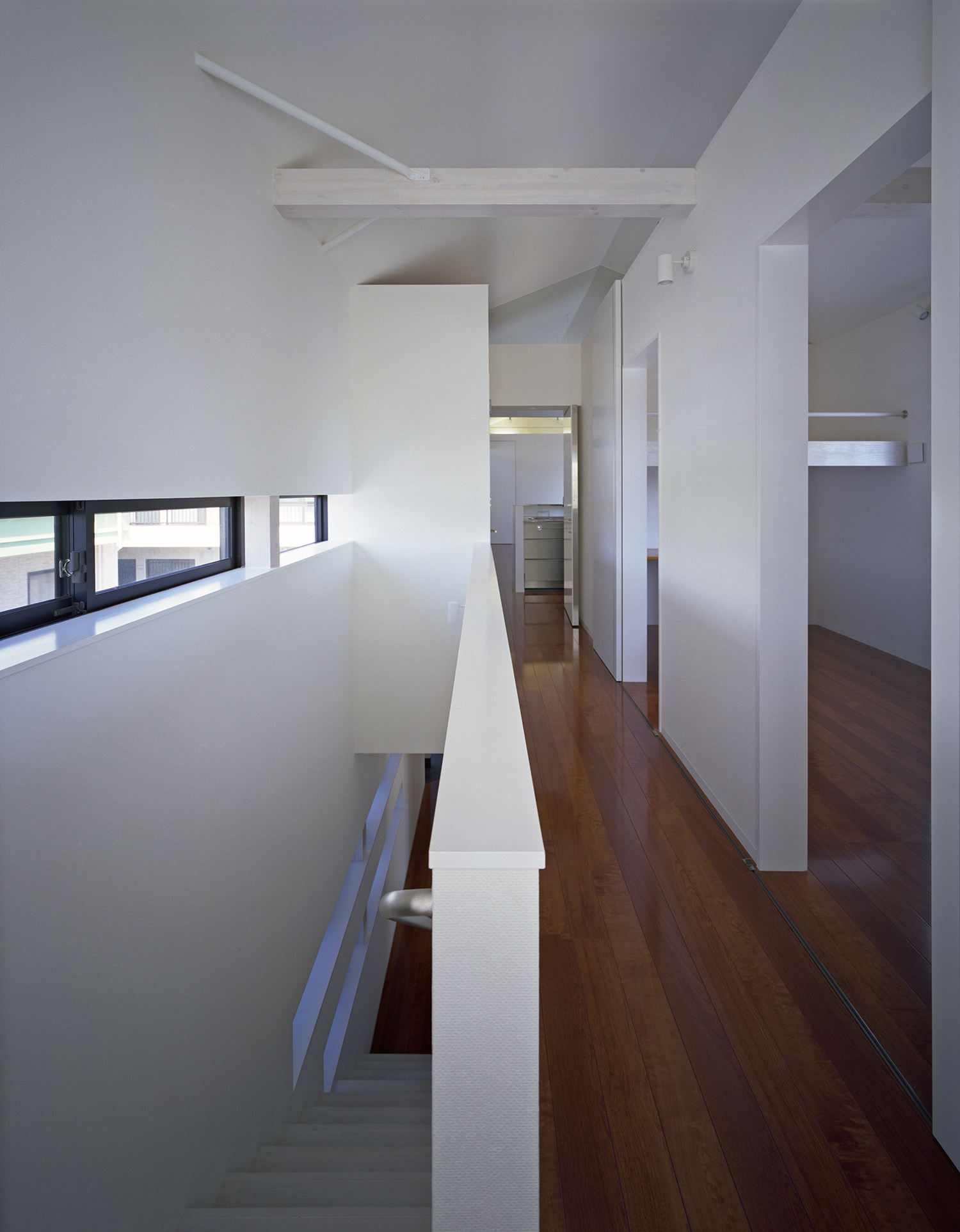 リビングに面しては下野を生かした広いルーフテラスをもうけリビングを拡張している。そのうえで、外部階段で直接庭と行き来できるようになっている。2階にありながら地面を近くに感じることができるよう意図している。庭に面した親の個室とは、庭を通じても繋がりをもつことができる。