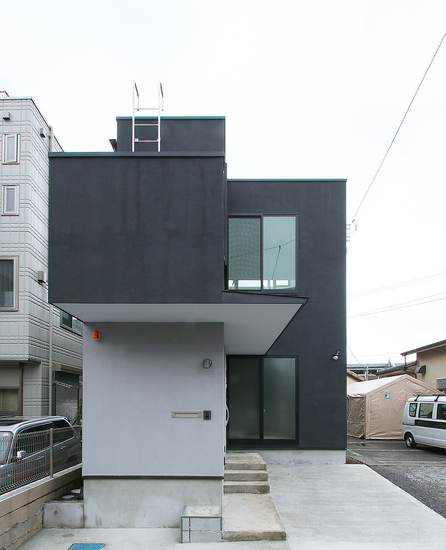 黒でシックにまとめられた外観。