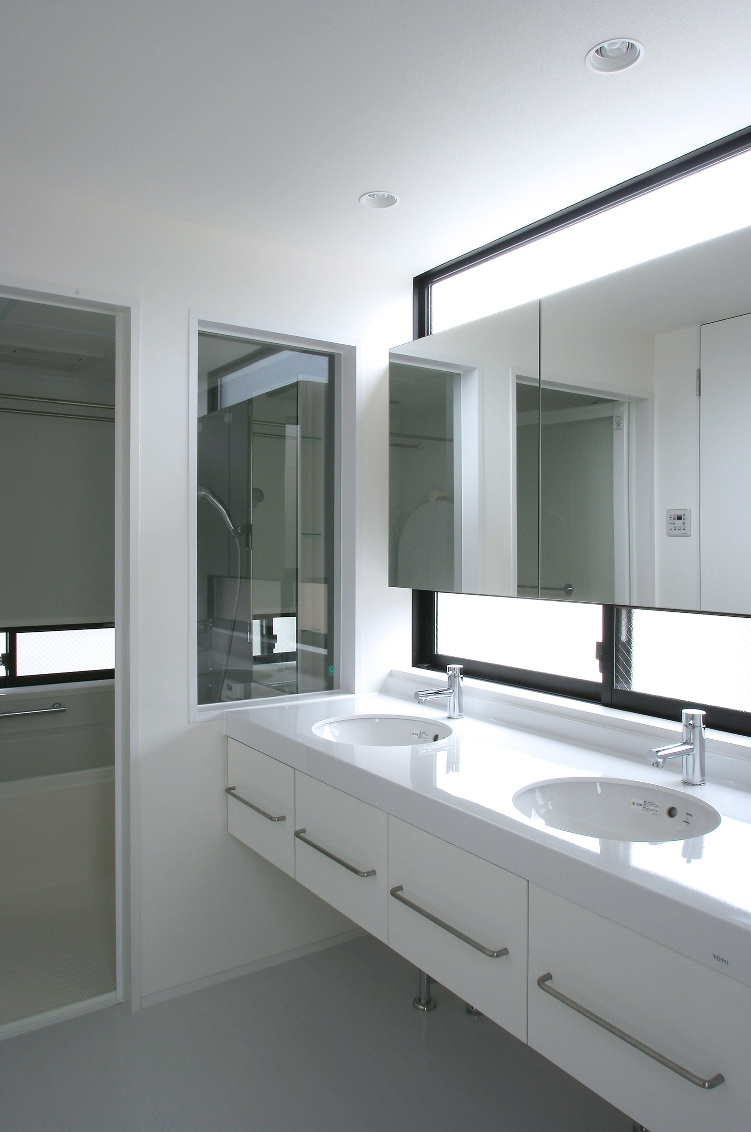 逗子市は海と山に近く、気候穏やかでとても豊かな自然に恵まれている。しかしながら、敷地は駅に近く利便性に富む反面、間口が狭くて隣に3階建てが近接して建つというむしろ都会的な性格の土地だった。そこで、限られた敷地条件の下、いかにしてインテリアにこの地の豊かな自然を獲得するかをテーマに設計をすすめた。